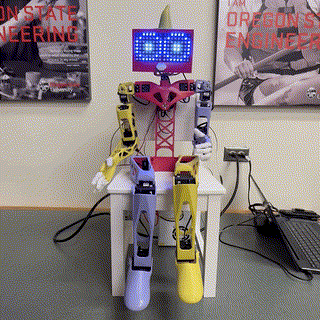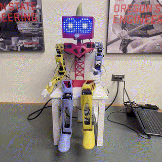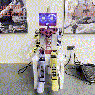 Each keyframe can (but is not required to) include an expression for the eyes, a new set of joint positions, as well as the ability to play audio. Additionally, each keyframe can include a waittime, which is how long to delay before sending the next keyframe. The specific keys and their values used in each keyframe are shown in the table below.